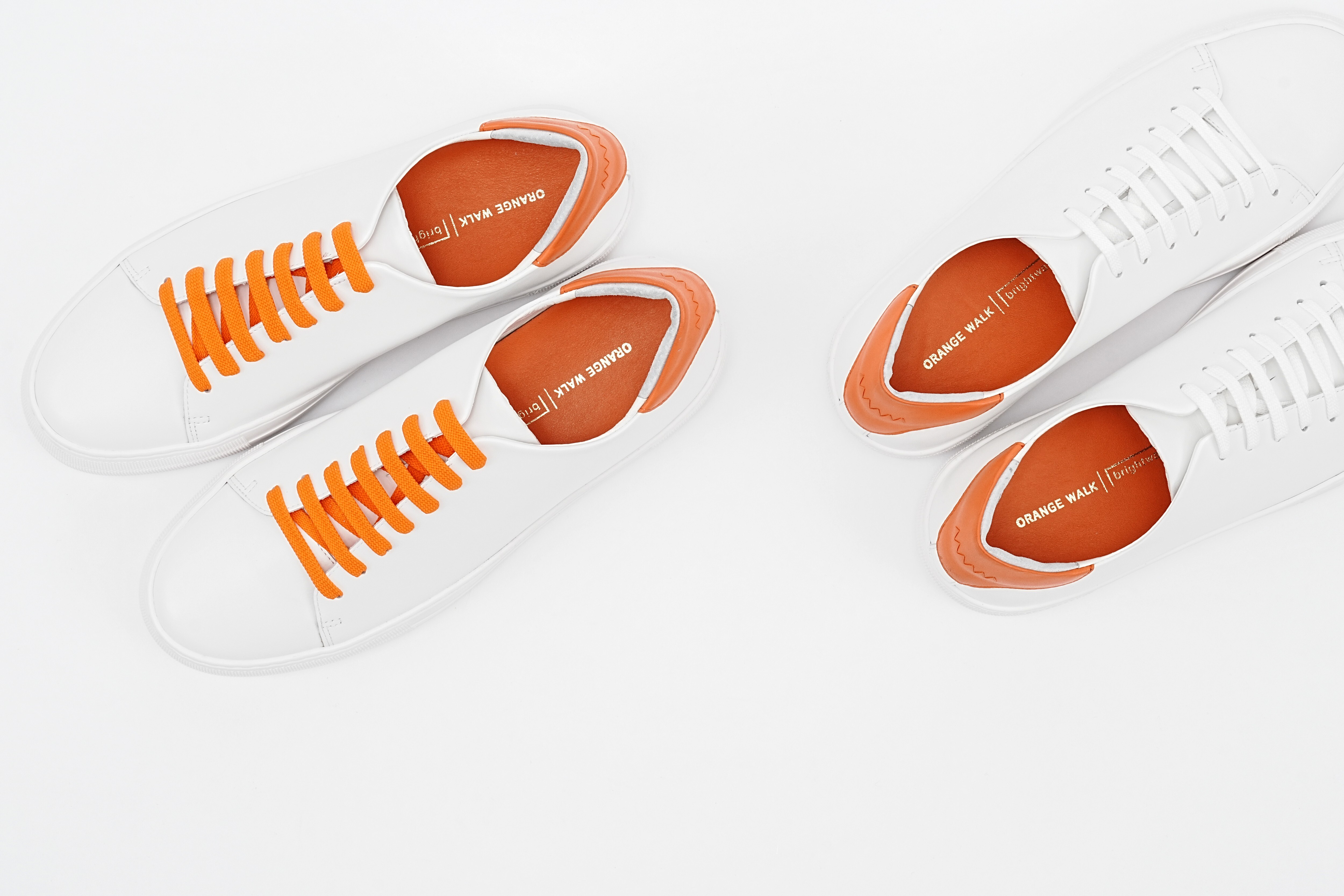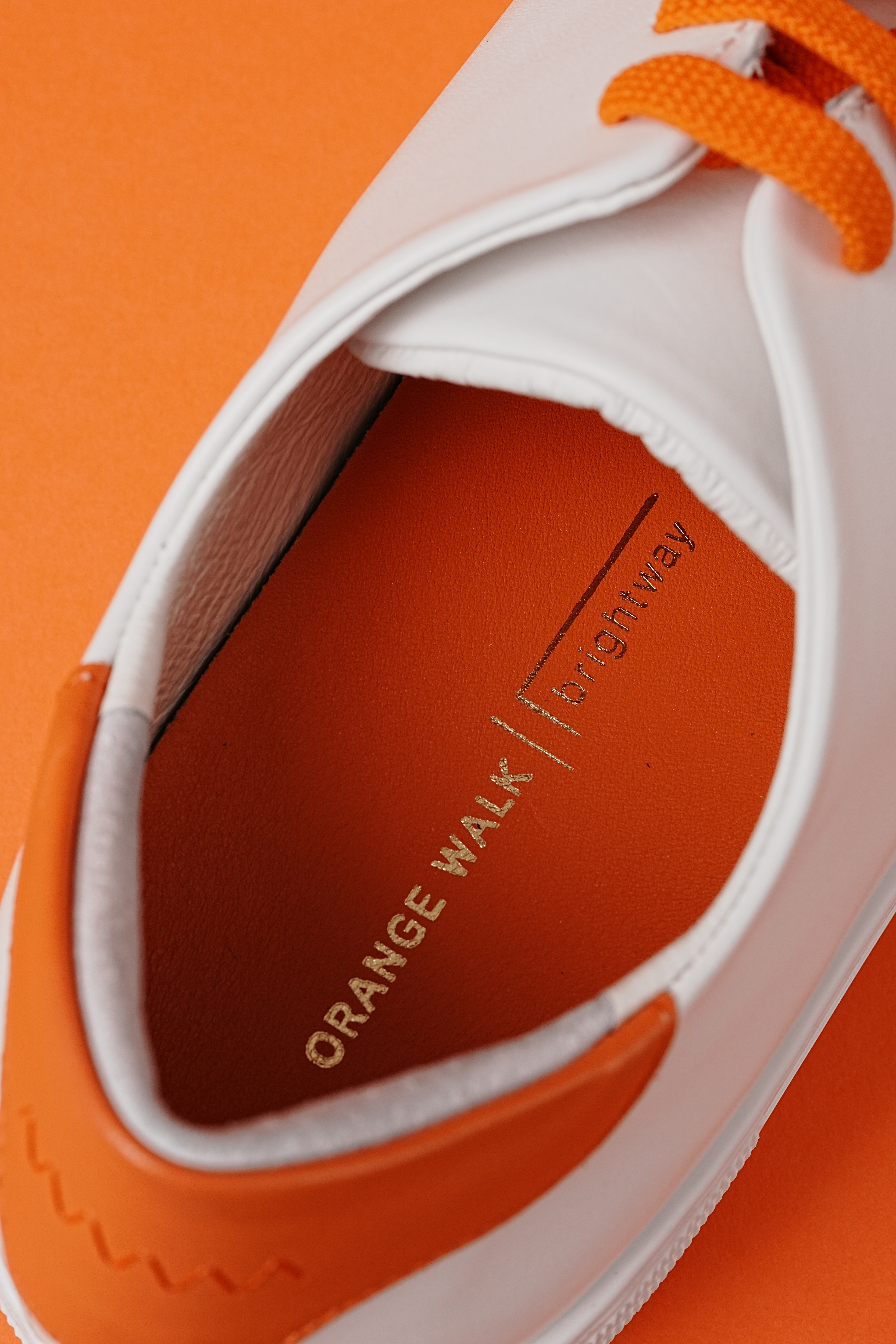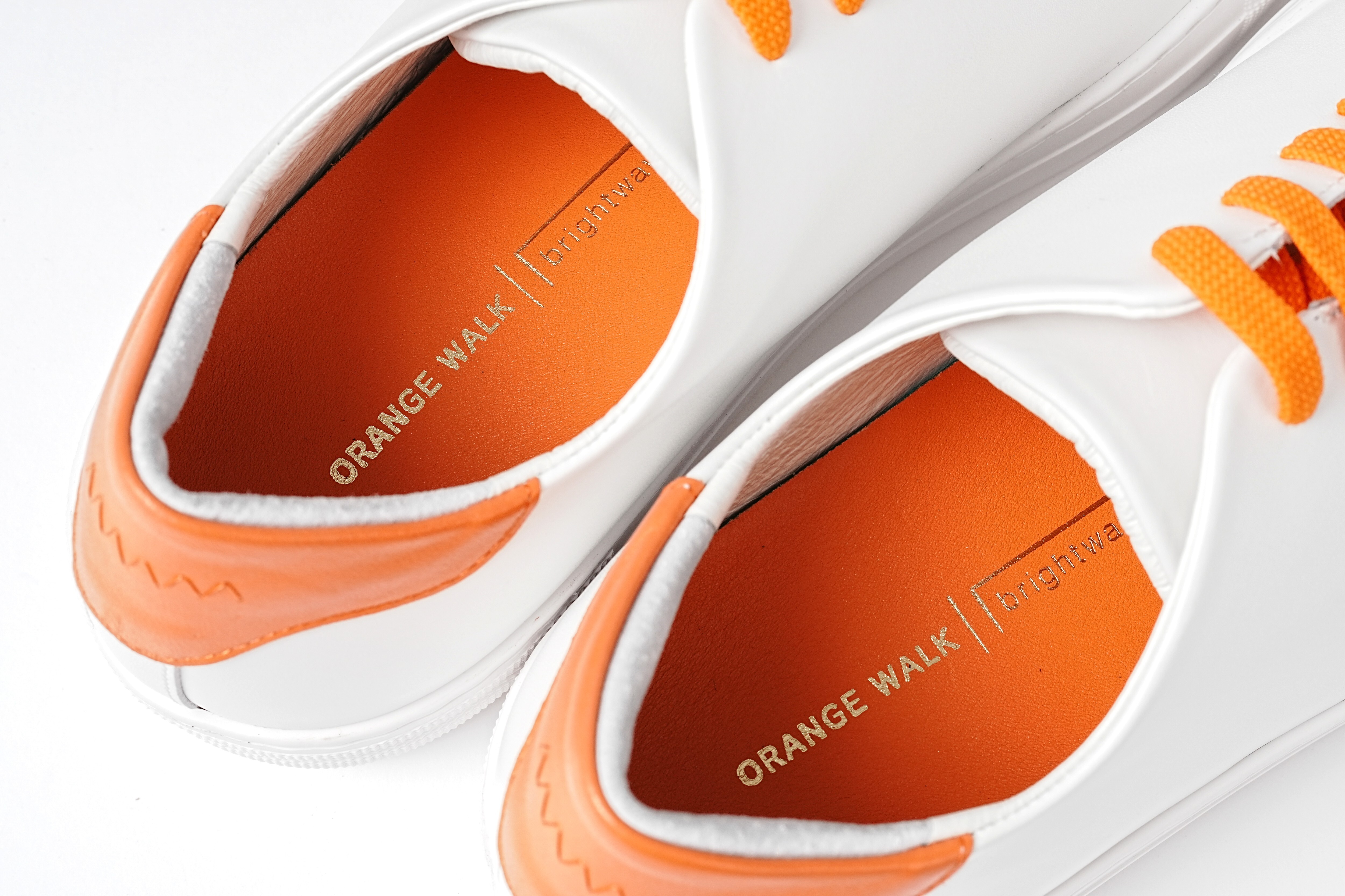 通常はホワイトとブラックのミニマルなデザインのbrightwayですが、ORANGE WALKスペシャル仕様でビビットなオレンジカラーに変身。